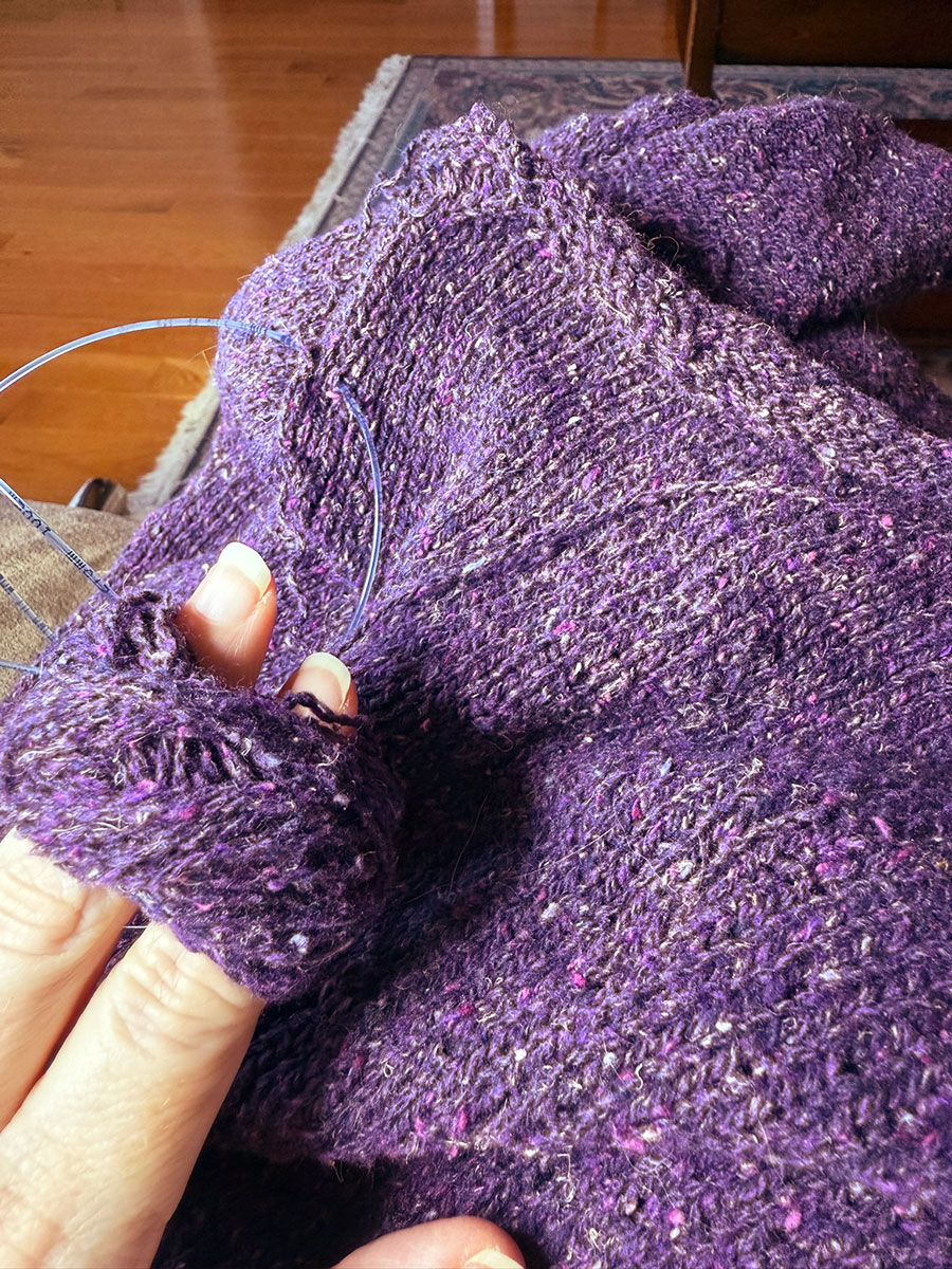 My Derecho tee is in time-out. I thought I was almost done, but no! First I should have tried it on as I went. The top part is fine, but the length is about two inches too long. I knit to the length the pattern said to knit, but I really forgot that I am… Continue reading Two big mistakes