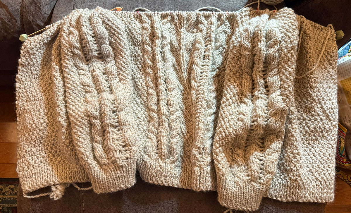 I finished the first sleeve and quickly set to work starting and completing the second, and I’ve just joined the sleeves to the body. It’s always a little awkward working all of the stitches at this stage, but at least working back and forth for a cardigan is a little easier than working in the… Continue reading Sleeves, body joined
