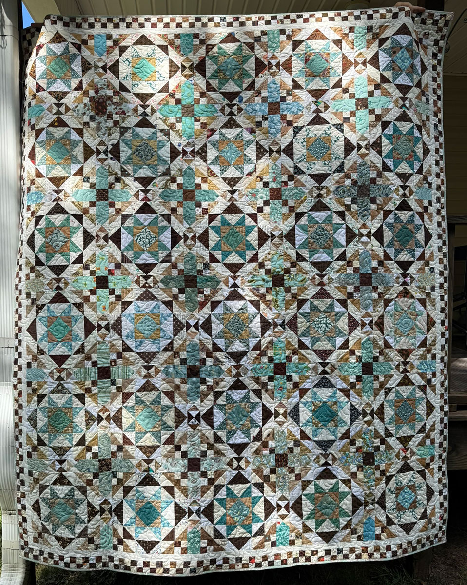 I finally got around to having it quilted, and picked it up from Margie Friday before last. I had enough of the backing fabric to make bias binding, so that’s what I did. At this time of year, the angle of the sun in the back yard is such that its rays are always dappling… Continue reading Remember Old Town?