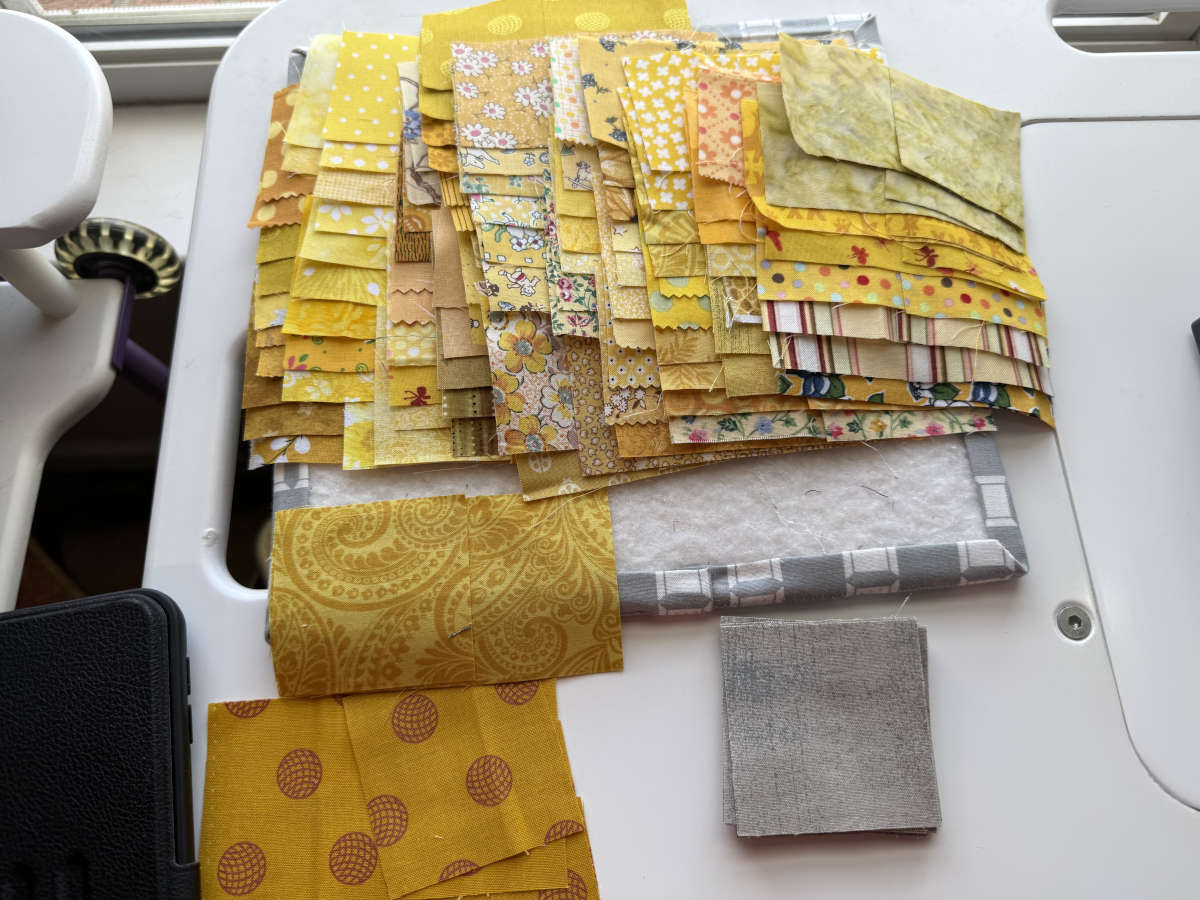 Since I’ve been trying not to do too much with my left thumb, I thought I’d just try piecing some small pieces on my machine (which doesn’t involve pinching). I cut out the pieces I needed for the little blocks from strips I already had ready, and began working on them. Just a little at… Continue reading A little yellow