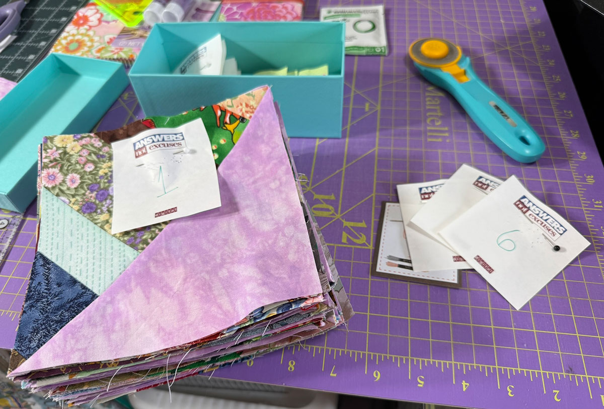 I finished piecing all of the blocks! And I’ve just started taking them down off the design wall in columns, prepping them for webbing this quilt together. I had to make an extra label because I previously only had 8 columns webbed together in other quilts. And Bonnie Hunter has released the colors for her… Continue reading Webbing prep